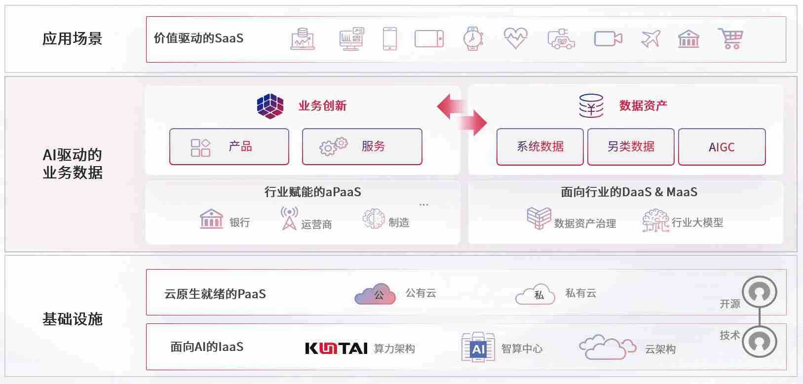 数字时代,,,围绕企业数字化转型的关键要素,,,,PG数码开创性的提出数云融合战略和技术体系框架,,着力在云原生、、数字原生、、、、AI原生和信创产业上架构产品和服务能力,,为处在不同数字化转型阶段的快消零售、、、、汽车、、金融、、医疗、、、、政企、、、教育、、运营商等行业客户提供泛在的敏捷IT能力和融合的数据驱动能力,,,,构建跨界融合创新的数字业务场景和新业务模式,,,助力企业级客户建立面向未来的核心能力和竞争优势,,全面推动社会的数字化、、智能化转型升级。。。